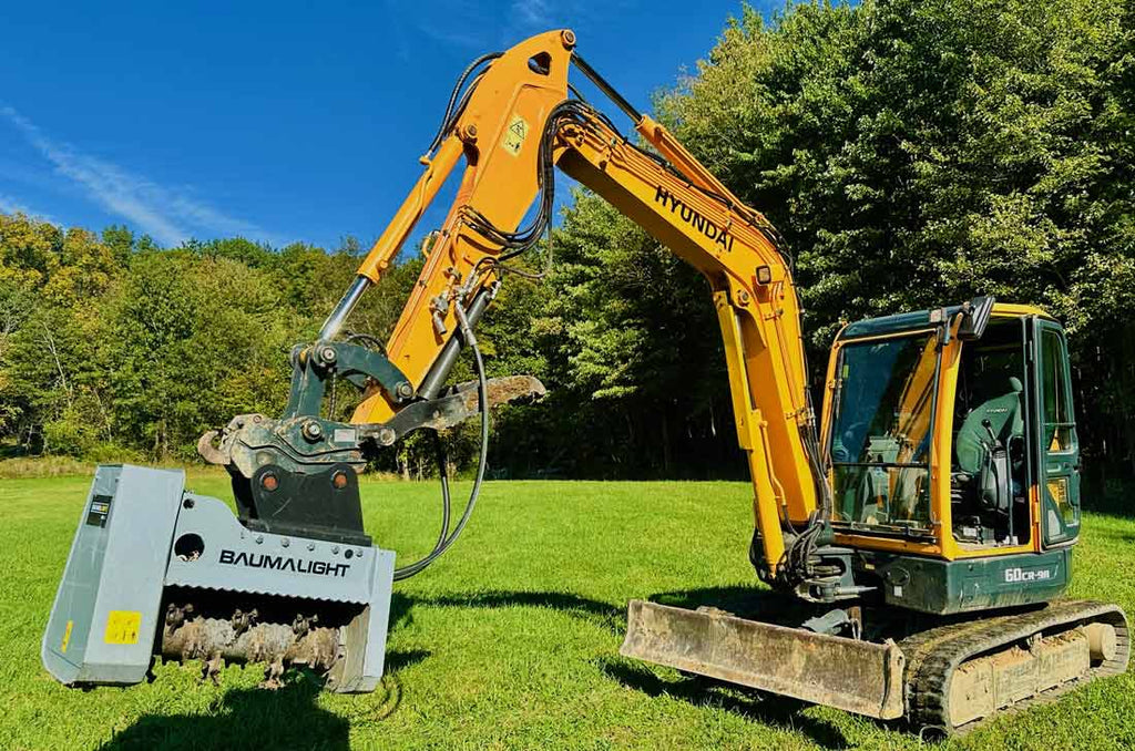 FIXED CARBIDE TEETH CHIP THROUGH BRUSH AND SAPLINGS AT HIGH ROTOR SPEED, PROVIDING STRONG RECURRING BITE AND FAST MATERIAL REDUCTION FOR SMALL TO MID-SIZE EXCAVATORS.